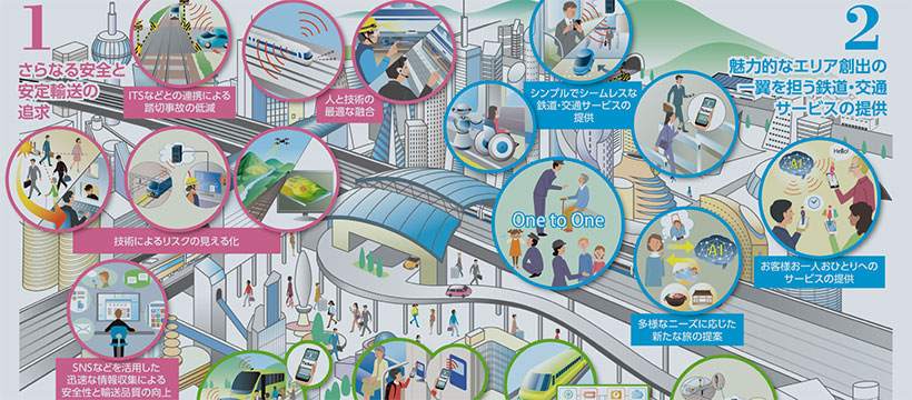 高架橋や鉄塔などにおける高所作業のリスクや点検にかかる費用の削減をめざし、ドローンを活用した安全な点検作業のほか、AIによるサビ判定などの実証試験を行なっています。