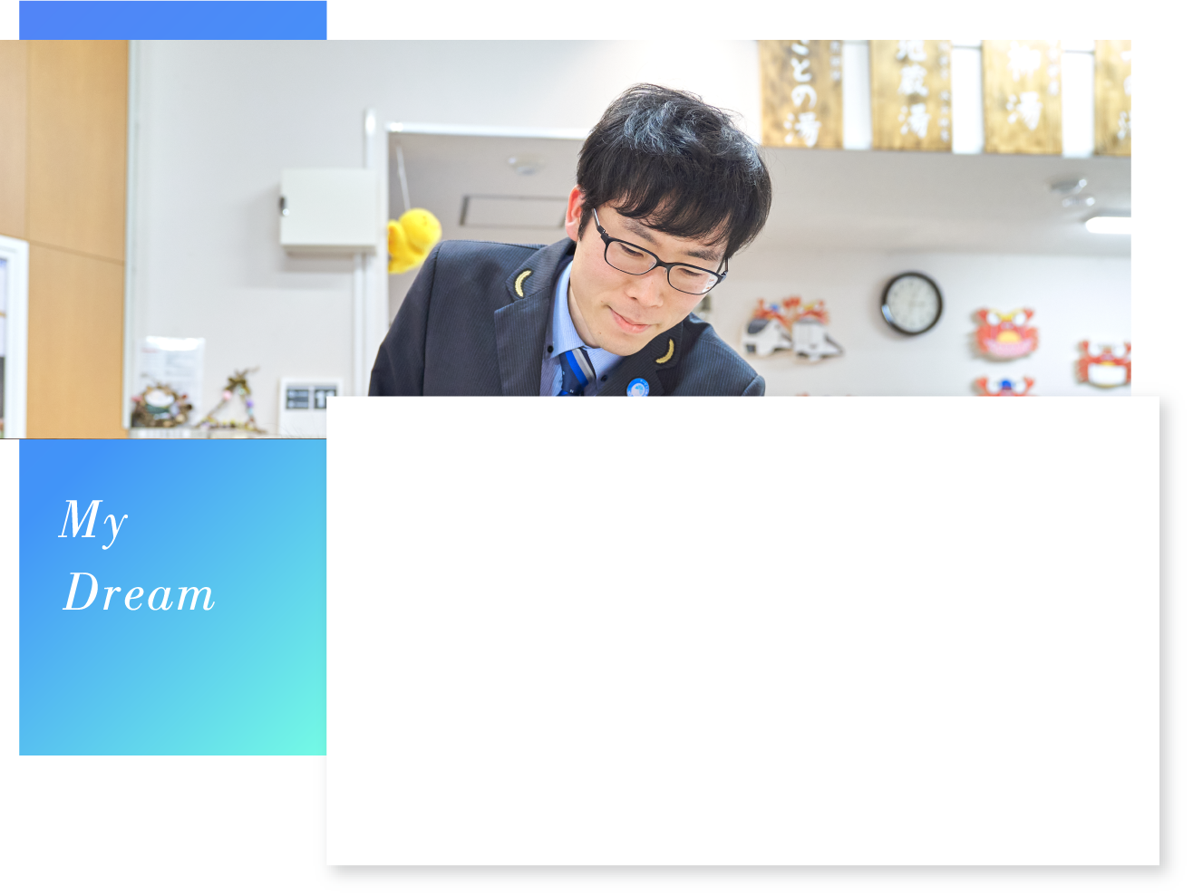 関西を代表する温泉地である城崎。その玄関口でもある城崎温泉駅は、地域の皆様との二人三脚で歩む駅です。駅には、各温泉旅館の方が宿泊客をお迎えに来られます。そこで、列車の遅延などがある時は速やかに情報を提供します。私たち駅係員は、実際に温泉に入ったり観光名所を訪問したりして自分自身で城崎を体験し、その経験に基づいてお客様へ案内を行ったりもしています。もちろん近年では、英語などの外国語への対応も進めています。城崎は、夜間に楽しめるスポットがまだまだ少ないと言われています。地域の皆様と協力しながら、夜の町並みを満喫してもらえる取り組みにチャレンジしたいと考えています。