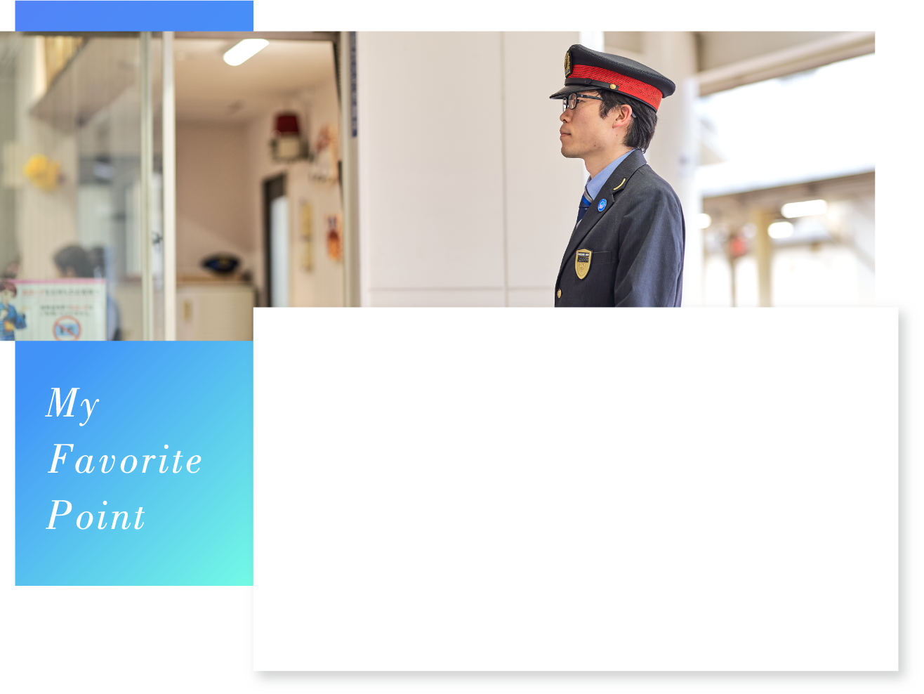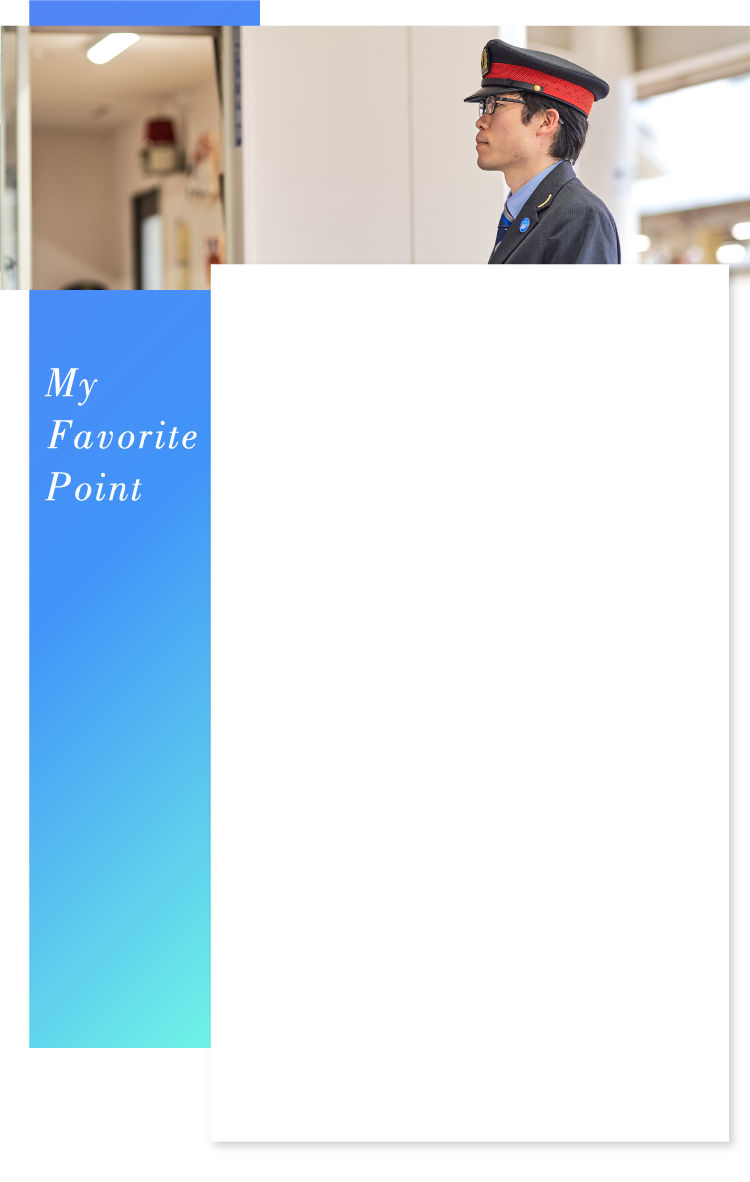 入社以来、人に恵まれてきたと思います。先輩方は私の将来を見据えながら、駅長業務資格をはじめとした資格の取得を促してくれたり、新たな職場へと導いてくれたりしました。それぞれの職場には、経験豊富で人間性にも優れた先輩がたくさんいました。「あの人のようになりたい」と思い、背中を追いかけてきたことが、今の私を作っています。そういった“偉大な先輩”であっても、皆さんとても気さくで、何でも相談できる間柄であるところも、私を成長させてくれた要因だと思います。