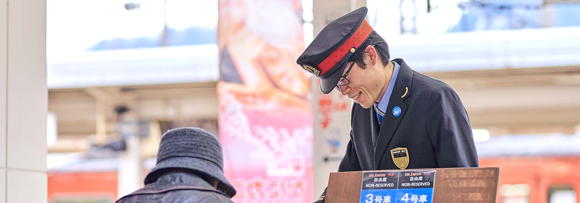 駅運転業務に携わった豊岡駅での約3年の勤務を経て、2018年には城崎温泉駅に異動。駅運転と営業の両方の業務に目配りをしながら、上司のサポート役として国内外からの旅行客で賑わう城崎温泉駅を切り盛りする役割を担いました。そんななかで携わったのが、「当直長」という業務です。当直長とは、駅長代行としての業務を受け持つ人のこと。いわば駅務のスペシャリストで、駅に設置されている金庫の管理を行うほか、みどりの窓口などを担当している社員に業務指示を行ったりもします。非常に責任の大きい仕事ですが、入社当時から、「駅務の仕事をするなら、いつかは当直長に」と思っていたポジションでもあります。駅全体を広く見渡しながら、必要な箇所にフォローに入ったり、タイミングを見計らって駅のメンバーたちに声かけをしたりと、スムーズに駅が運営できるように心がけています。特に列車の遅延時などには、駅係員が一丸となって情報共有やお客様への案内を行うことが大切です。ここで生きているのが、営業と駅運転の両方を知っているという私の強み。遅延状況を見ながら、それによって起こり得るお客様の動きやみどりの窓口の混雑状況などを予測し、万全の準備をしておくように後輩たちに伝えています。この連携がうまくいって円滑に駅を運営できた時、大きな達成感を味わうことができます。