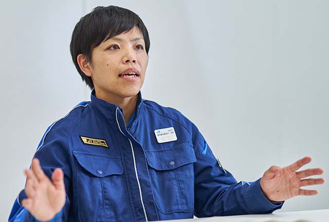 2019年6月に現場の係長となり、古巣である台車センターへ戻ってきました。毎月入場してくる車両の本数に合わせて作業工程を組むとともに、現場社員の把握や指導・育成が主な仕事となります。現在は2つの作業グループ(1グループ約10名)を受け持ち、個々の特性に配慮しながら、どのように声掛けをしていけばいいのかを自分でも試行錯誤するなかで、現場社員の指導・育成に当たっています。技術的なことのフォローよりも難しいのが、必要な作業にいかに能動的に取り組んでもらえるかという教育の部分です。指示されたことの意図や必要性が理解できなければ、納得感を持って作業には臨めません。「なぜ、この作業が必要なのか」が上手く伝わらなければ、言い方を変えて再度アプローチするなど、先輩係長のサポートのもと、自分なりのやり方を探りながら日々より良い職場づくりに努めています。大変なことが多い一方、裁量を持って自由にできる部分もあり、例えば「これまでとは少しやり方を変え、より作業効率を上げられるのではないか」といった自分なりの色を出し、職場に変化をつけられるのも今の仕事の魅力になっています。博多総合車両所の台車センターにおいて、私が初めての女性係長。まだまだ女性が少ない職場ですが、女性が働きやすい環境づくりに尽力するのも一つの目標です。私自身は係長としての仕事を確立し、そこで積み重ねていった経験を活かし、将来的には次のステップもめざせればと考えています。