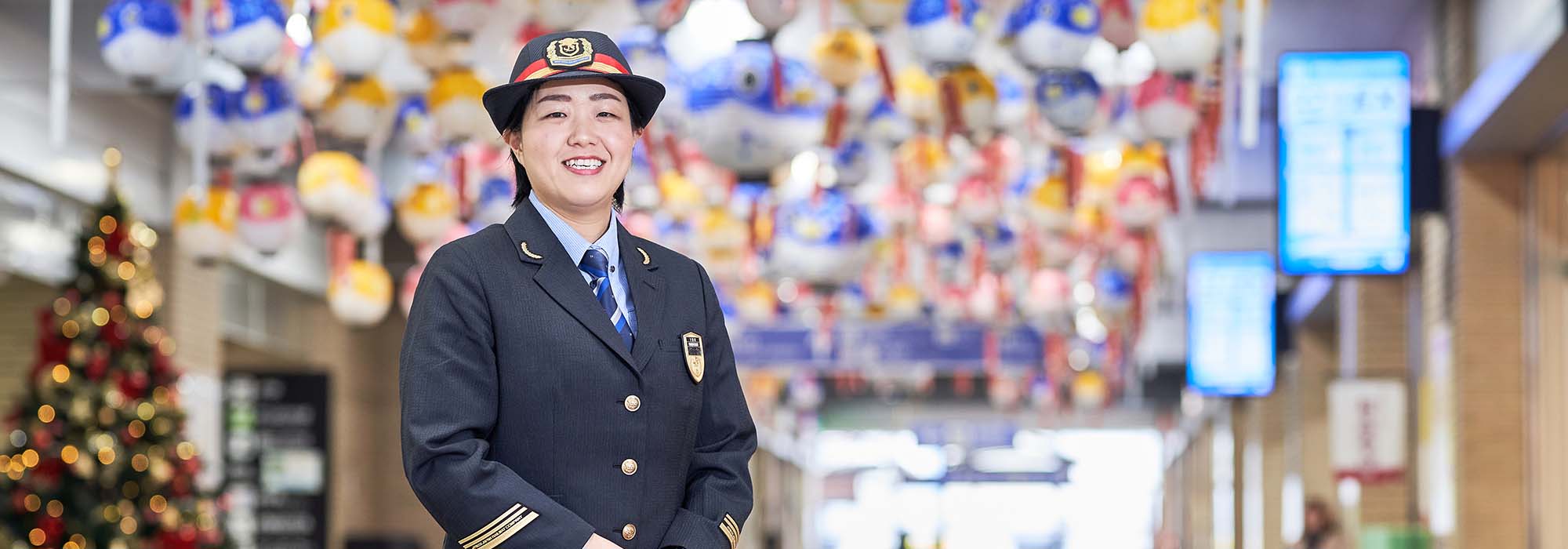 鉄道の安全な運行を支える仕事の一つに、駅運転業務があります。現在は機械により集中制御するシステムになっていますが、線路工事や車両の入換作業、列車遅延などの異常時には、駅係員が駅に設置された制御盤で信号を操作し、列車の運行を1本ずつ制御しなければなりません。在来線、新幹線とも新山口駅の女性係員として初めて、その信号扱い業務や列車の連結・分割を行う操車業務も担当しました。そんな駅運転業務に携わっていた私に、ある日、駅長から「イベントの司会をやってみないか」と声がかかりました。山口線全線開通90周年記念イベントで、普段はお客様と直接関わることが少ない業務に就いていただけに驚きましたが、滅多にない機会だと引き受けることに。打ち合わせの段階から地域の方にも入っていただき、本番はもちろん、準備期間中も親しく交流させていただきました。当日は春の嵐のようなあいにくのお天気で、ホームから駅舎にイベント会場を急遽変更。突然の対応となりましたが、一緒にイベントを企画・運営したスタッフや地域の皆様に支えられ、無事に最後までやり遂げることができました。会場には、広島の実家から母親も駆けつけてくれて、この時が初めて制服姿を見せる機会となりましたが、「成長したね」と声をかけられ、とてもうれしかったことを覚えています。