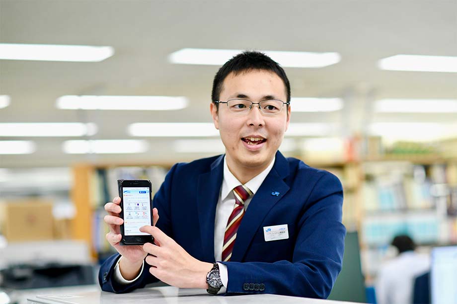 企業ホームページや鉄道・観光情報サイト「JRおでかけネット」、インターネット列車予約サービス「e5489」などのシステム開発・運用を担当し、最近では寝台列車のネット予約化に取り組んでいます。新サービスの開発となると短くても1年、長いもので2年かかります。お支払い、払いもどしなどお金にかかわるシステムでもあるので、お客様に誤解を与えないような表示方法などを慎重に検討を重ねながらつくりあげています。