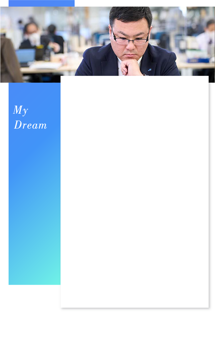 現在、私が取り組んでいるWork Place Networkプロジェクト(WPN)では、鉄道や駅をご利用になるお客様にこれまでにはなかった、よりリーズナブルで付加価値の高いジャーニーを提案すべく、お客様の動線上に展開される様々なワークプレイスと鉄道サービスを組み合わせ、”時間と場所に捉われない働き方”をご提案することをめざしています。WPNの構築を通じて、お客様に働き方に係る多様な選択肢をご提供し、地域の皆様により利便性の高いライフスタイルをご提案していきたいと思っています。