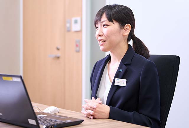 2016年に輸送課に配属された時、課内では「乗務員が何を見てどのように物事を判断しているのかを可視化し、指導に活かせないか」ということが課題になっていました。私は車掌経験があり、「ベテラン車掌が何を見て何を考えているのか知りたい」と感じていました。課題感がマッチしたこともあって、担当を申し出ました。 この時注目したのが、「アイトラッキング」という視線移動を可視化する技術です。この技術は介護施設などで、視線によるシステム入力を通じて意思疎通をする目的などで使われています。さらに調べたところ、大学病院で看護師の指導に活用されていることがわかりました。さっそく大学病院を見学させてもらい、現場での使い方や当社で使う場合の課題や改善方法を検討しました。当初は「本当に鉄道の仕事に使えるのだろうか」という声も寄せられていたのですが、現場や支社の協力を得ながら導入を進め、「視線移動に着眼した教育」という新たな仕組みが実現されました。今ではこの仕組みは、全社で活用されています。この経験から私は、鉄道業界にとどまらず他業界の例を積極的に取り入れることの重要性を学びました。さらにJR西日本は、若手であっても大きなプロジェクトを任せてもらえ、会社全体を変える仕事ができる会社だと実感しました。また、出産というライフイベントの前に大きな仕事を経験できたことは、復職へのモチベーションにもなりました。