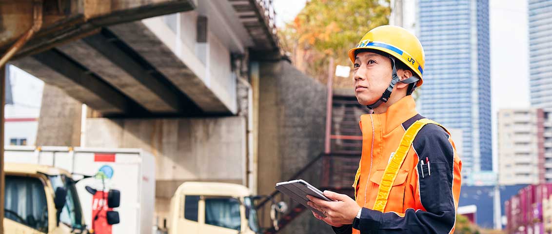 鉄道の工事は道路工事などとは違って、通行止めや迂回ルートの設定を容易には行えません。線路を支障するような工事は、最終列車から翌日の始発までの、限られた時間が工事時間となります。そこで、どの作業にどれぐらいの時間がかかるかを正確に割り出し、工事のスケジュールを決めていきます。資材や工事車両を置く場所など、線路以外の場所での手配も欠かせません。社内の他部署をはじめ、協力会社や周辺地域などと連携しながら工事計画を立てる必要があります。